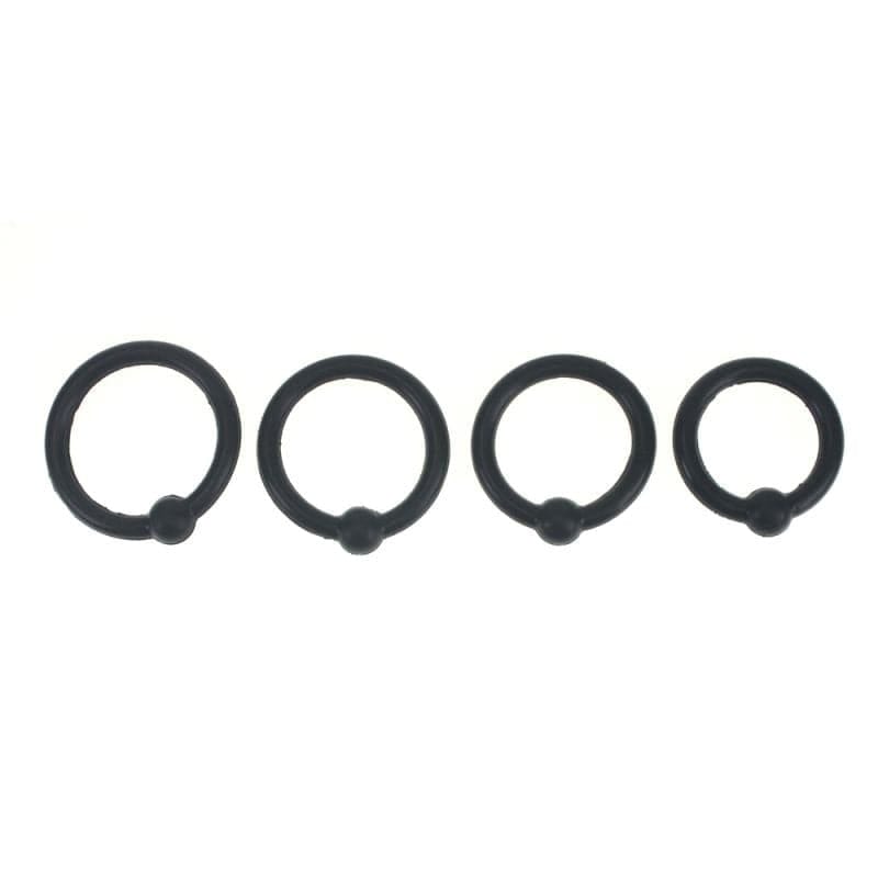 Control the 4 Piece Silicone Cock Head Ring Set for targeted glans stimulation. Designed for men seeking intense solo or partnered play with varied sizes for a custom fit.